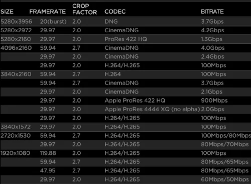 Records @ 5.2K in CinemaDNG RAW & Apple Pro Res